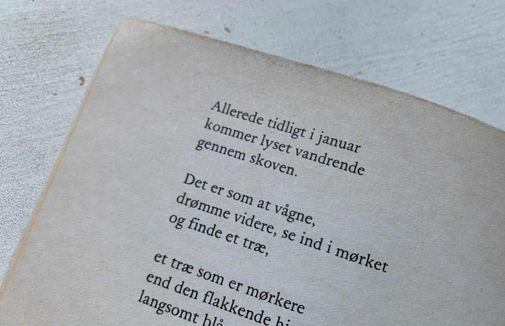 Bestem dig, natur! Det skærer helt vidunderligt gennem teksten og giver læseren samme opvågnen som jeget, der slår døren op. Der er koldt lys i skoven, og der er klar lyrik i digtet – snus det til dig! Eller hvad med dette, et pludseligt nik til van Gogh: